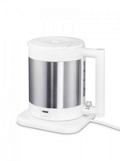 Rychlovarná konvice Princess 23 2614 Simply White - v designu známého návrháře Jana des Bouvrie - Simply White - pouze od firmy Princess. Plná výbava - skrytá spirála, na podstavci otočná, přepínač, filtr v hubici, trojí jištění. Konvice Princess je vyrobena z nerezové oceli s jasně bílými doplňky. Stěny nerezové nádoby jsou izolované - zdvojené, tak, aby vnější část konvice nebyla příliš horká.