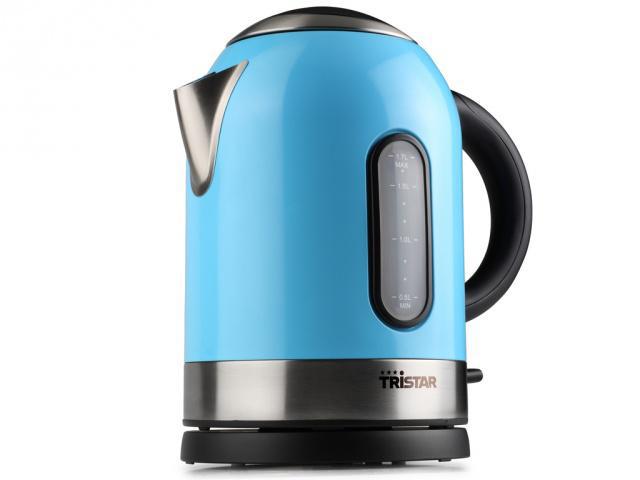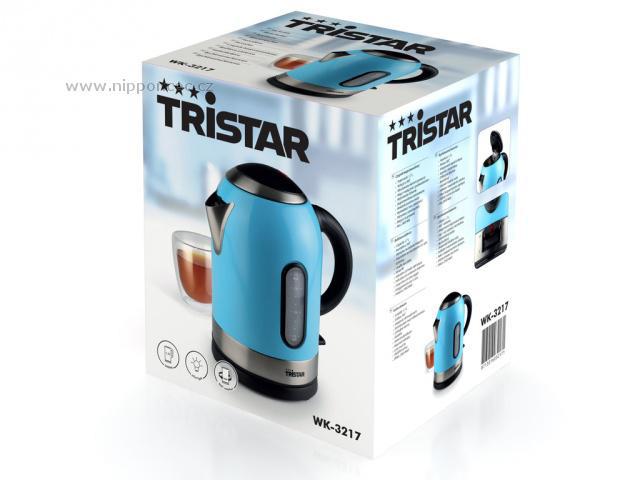 Rychlovarná konviceTristar WK 3217 v moderním designu ve veselých barvách, navíc s perfektní výbavou: 360 stupňů otočná - vhodná pro leváky i praváky, snímatelná z kruhového podstavce, ergonomické snadno uchopitelné ouško, objem 1,7 litru, skrytá topná spirála odolná proti zavápnění, přepínače zapnuto/vypnuto se světelnou kontrolkou, ukazatel hladiny vody, ryska MIN/MAX, víko s bezpečnostním zámkem, výjimatelný filtr v hubici.  Na spodní části výrobku je umístěna praktická schránka na kabel, který nikde nepřekáží. Vysoký výkon 2400W.