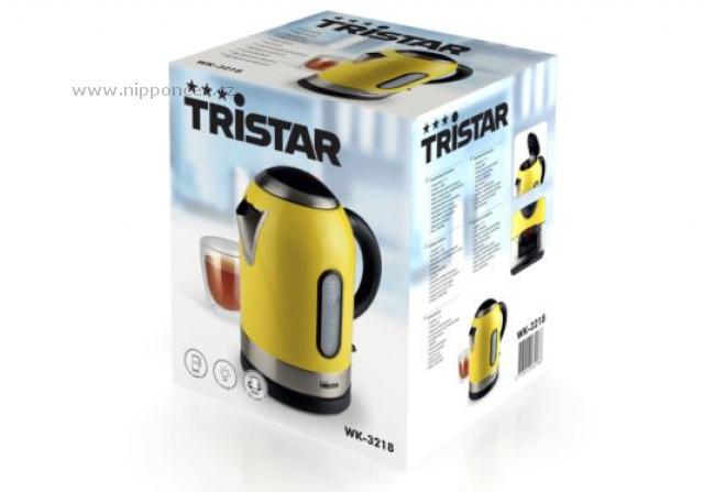 Rychlovarná konviceTristar WK 3218 v moderním designu ve veselých barvách, navíc s perfektní výbavou: 360 stupňů otočná - vhodná pro leváky i praváky, snímatelná z kruhového podstavce, ergonomické snadno uchopitelné ouško, objem 1,7 litru, skrytá topná spirála odolná proti zavápnění, přepínače zapnuto/vypnuto se světelnou kontrolkou, ukazatel hladiny vody, ryska MIN/MAX, víko s bezpečnostním zámkem, výjimatelný filtr v hubici.  Na spodní části výrobku je umístěna praktická schránka na kabel, který nikde nepřekáží. Vysoký výkon 2400W. Skvělý vzhled a kompletní výbava za přiměřenou cenu!