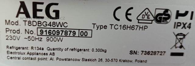 Ilustrační foto: výrobní štítek sušiček AEG.