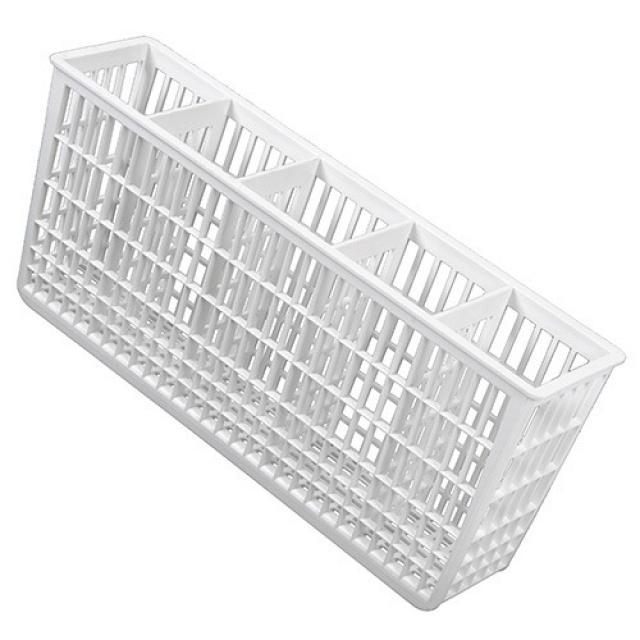 Tento náhradní díl je vyroben z bílého plastu. Má 5 oddílů bez krytu i madla - jednoduchý košík na příbory.