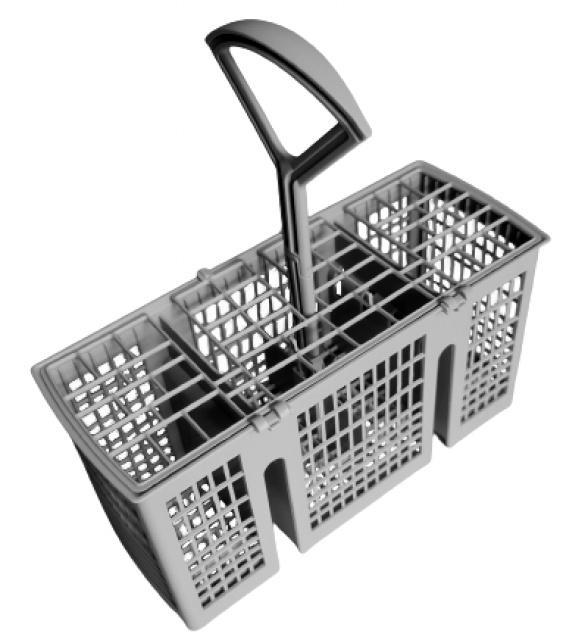 Univerzální koš na příbory je prostorově nenáročný, má 6 přihrádek. Rukojet koše je odnímatelná. Je vhodný pro 45 cm i 60 cm myčky nádobí. Tento košík na příbory lze použít jako univerzální nebo jako doplňující k většímu příborovému koši. Koš je univerzální pro všechny myčky, kde vyhovuje rozměry, výrobců AEG, Electrolux, Bauknecht, Bosch, Constructa, Dedietrich, Electrolux, Gorenje, Hanseatic, Miele, Neff, Privileg, Siemens, Whirpool, Zanker, Zanussi, Balay....