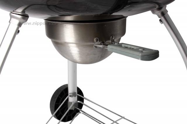 Kotlový gril na dřevěné uhlí s roštem o průměru 54 cm se perfektně hodí na domácí grilování na terase, chatě či zahradě. Díky poklopu dokážete gril lépe rozhořet a díky následné cirkulaci vzduchu dochází také k lepší a rovnoměrnější distribuci tepla. Polypropylénová nárazuvzdorná kola usnadňují manipulaci s grilem. Trojice nohou zajišťuje dokonalou stabilitu grilu. Vyrobeno ze smaltovaného plechu, všechny hrany víka i kotle jsou pokryty dvojitou vrstvou, která důkladně chrání proti korozi.