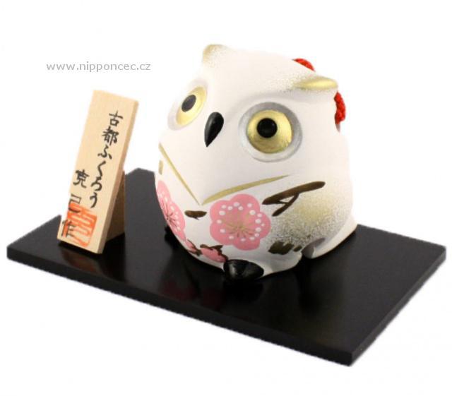 Koto fukuro - japonská sovička pro štěstí a bezstarostný život ze starého císařského města Koto. Sovička se zvonečkem je ručně zdobena tradičním motivem švestkového květu. Sovička je dodávána na lakovaném dřevěném podstavci.