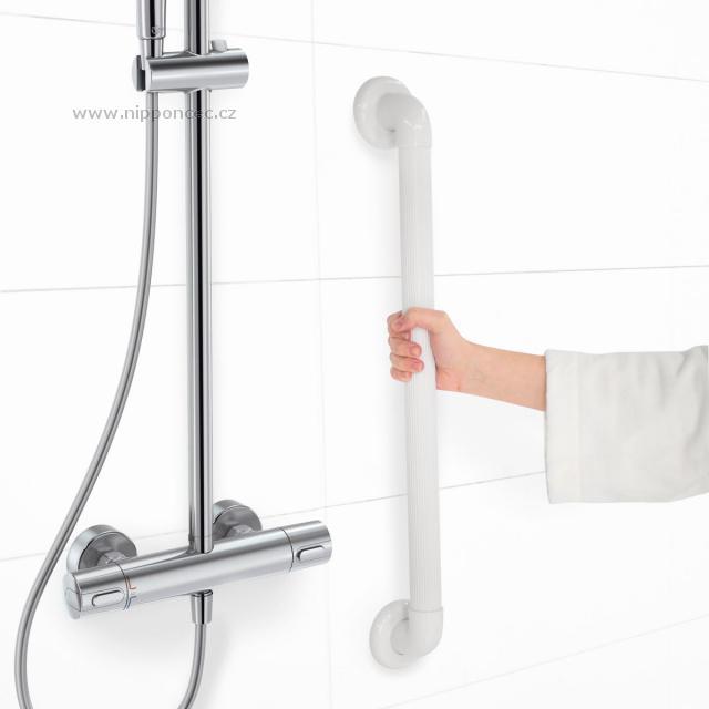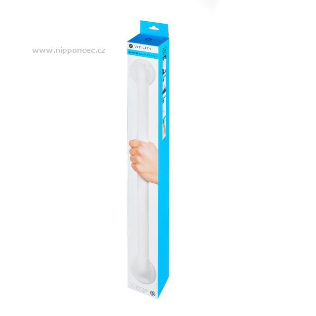 Koupelnové nástěnné madlo Vitility 70110200 s délkou 60 cm a s žebrovaným povrchem pro bezpečné uchopení. Vhodné do koupelny či na toaletu. Maximální zatížitelnost je 120 kg. Snadno se upevňuje do zdi pomocí šroubů a hmoždinek. Madlo je dodáváno včetně 6 šroubů a hmoždinek. Pomáhá například sedět a vstávat z toalety.