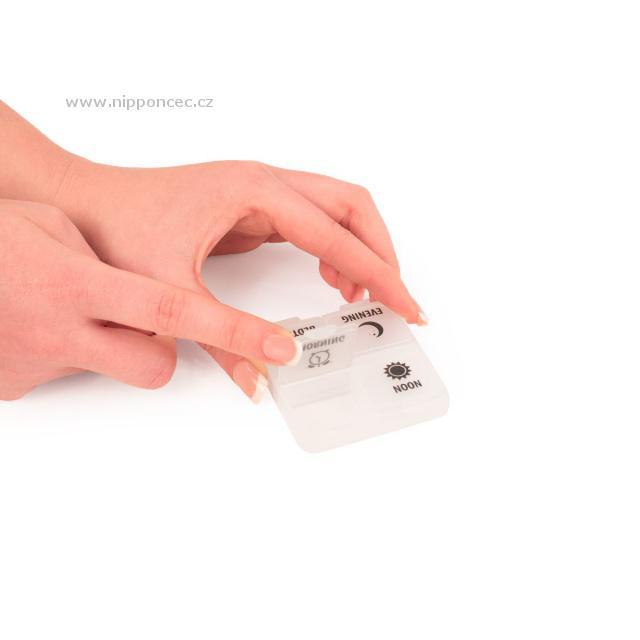 Krabička na léky Vitility 70610080 má čtyři přihrádky a má denní rozdělení na ráno, odpoledne, večer a před spaním. Pokud musíte brát různé léky, je velmi důležité, abyste si je nezapomněli vzít. Pokud nemáte jasný přehled o tom, které léky jste užili, může se stát, že si léky vezmete dvakrát nebo je zapomenete, což může vést ke komplikacím. Vhodný pro osoby, kteří užívají více léků denně.