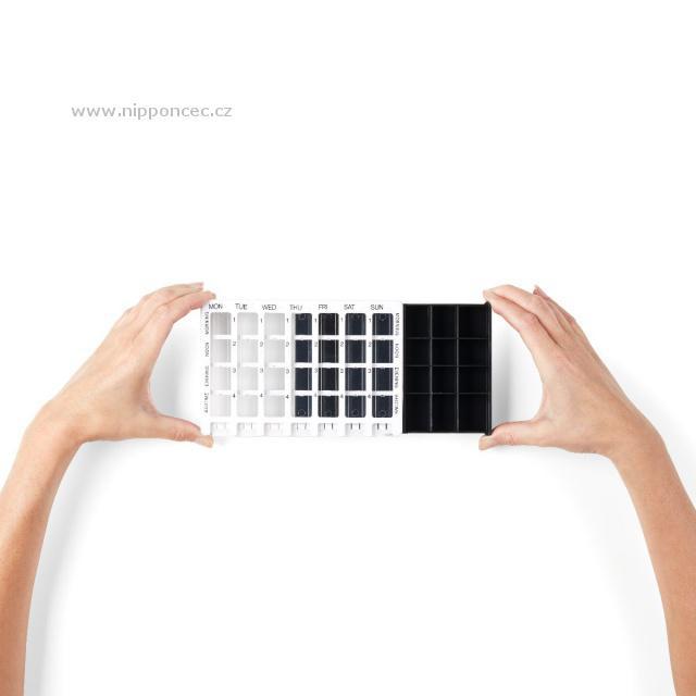 Ztrácíte se v nepřeberném množství předepsaných léků nebo si léky zapomínáte brát? S krabičkou na léky od značky Vitility na ně jen tak nezapomenete. Krabička nabízí snadné řešení uskladnění léku. Krabička je rozdělena na 7 sloupečků, každý sloupeček představuje 1 den v týdnu. Dále je krabička rozdělena na 4 řádky. Každý řádek představuje jednu část dne: ráno, poledne, večer a před spaním.