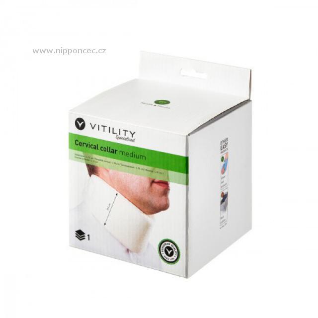 Krční límec Vitility 80610100 poskytuje pevnou a současně pohodlnou oporu, která ulevuje od bolesti. Krční límec se velmi snadno nasazuje a uzavírá pomocí suchého zipu. Je vyroben z příjemného materiálu a dle potřeby ho lze vyprat v pračce. Je ideální pomůckou pro použití po úrazu či při problémech s krční páteří. Délka používání se doporučuje konzultovat s fyzioterapeutem.