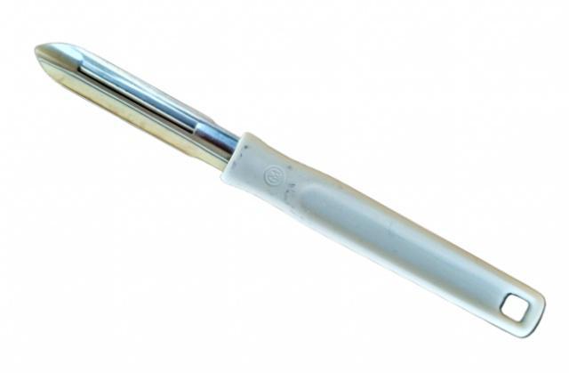 Kuchyňská škrabka na brambory a zeleninu, s držákem z plastové hmoty a čepelí z nerezové oceli. Škrabka je specielně konstruována pro praváky. Kromě škrabání umožňuje navíc vykrajování jaderníků, zdobení ovoce a zeleniny a prořezávání kůry citrusových plodů. Český výrobek, který je vyráběn pouze z českých komponentů, tomu odpovídá i tradiční kvalita. Barva držáku se může lišit od obrázku, nelze ji ovlivnit, vždy se jedná o pastelové barvy.