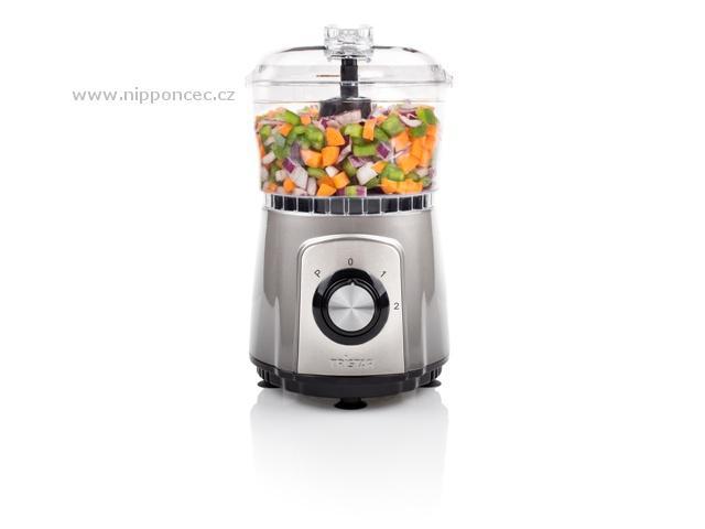 Kuchyňský robot Tristar - sekání, krájení nebo strouhání je s tímto všestranným kuchyňským pomocníkem velmi snadné. Díky dvěma rychlostem je možné zpracovávat měkkou i tvrdou zeleninu. Výrobek je ideální pro přípravu mnoha druhů čerstvých zeleninových salátů, stejně tak i zeleniny do polévek. Součástí kuchyňského robota je přepínač vypnuto/zapnuto, čepelka i krájecí kotouč z nerezu, víčko s otvorem pro plnění ingrediencemi a nádoba o obsahu 0,5 litru.