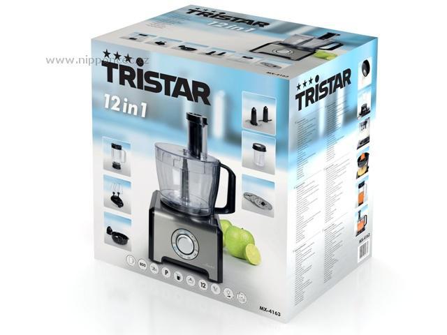 Kuchyňský robot, s kapacitou 1,2l, je vhodný pro drcení, krájení, sekání, hnětení, plátkování - i hranolek, téměř všech druhů potravin. Mixér, s kapacitou 1,5 litru je vynikající pro přípravu omáček, koktejlů, ovocných šťáv. Kuchyňský robot Tristar MX-4163 je osazen výkonným motorem 800s plynulým elektronickým ovládáním rychlosti a rychlostí TURBO pro krátký intenzivní ráz. Má kvalitní čepele z nerezové oceli, součástí balení jsou tři různé nerezové kotouče - pro drcení, sekání na drobno, plátkování, a krájení, hnětacím nástavcem, pro efektivní použití.