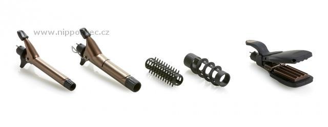Velká sada na ondulaci vlasů Tristar Multi Hair Styler 6 v jednom vám dává možnost vytvoření stylových účesů pro každou příležitost. Tento multifunkční výrobek splní zdařile funkci žehličky vlasů i krepovačky na mimořádné příležitosti. Součástí balení jsou 2 kulmovací nástavce - o průměru 19 mm, na který můžete vsunout i nástavec kartáčový, a o průměru 25 mm - na ten můžete vsunout nástavec spirálový. Kulmovací nástavce i desky žehličky vlasů mají keramický povrch - vhodné i pro jemné vlasy. Otočná šňůra umožňuje snadnou manipulaci.