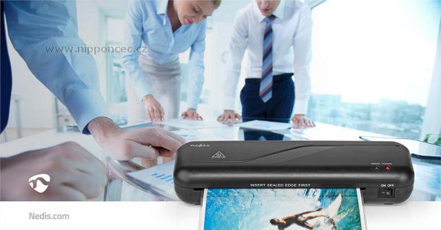 Kompaktní laminátor Nedis formátu A4 je ideální pro využití v domácnosti nebo pro malé kanceláře. Rychle a efektivně laminuje malé plakáty, poznámky, ID karty, vizitky, jídelní lístky nebo cokoliv na papíru do velikosti A4. Automaticky se vypne, aby se předešlo přehřátí. Laminuje papír a kartón až do tloušťky 0,6 mm. Zahřátí stroje a jeho příprava na provoz trvá jen tři až pět minut, zařízení laminuje rychlostí 230 mm za minutu a aplikuje ochrannou vrstvu na kartón a papír.