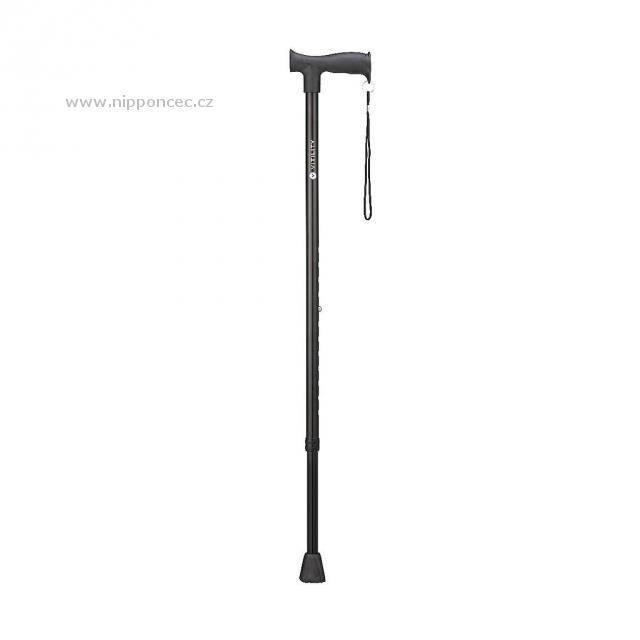 Vycházková černá hůl Vitility 70510420 je vyrobena z hliníku, vypadá velmi stylově a je lehká. Rukojeť hůlky je ergonomicky tvarovaná, takže se pohodlně drží. Disponuje gumovou podložkou pro tlumení nárazů a lepší přilnavost. Vy tak máte větší kontakt se zemí, což vám dává větší kontrolu a umožňuje vám pohybovat se s větší jistotou. Vycházková hůl je výškově nastavitelná, a proto ji může používat více lidí. Vycházková hůl je dodávána s popruhem na zápěstí.