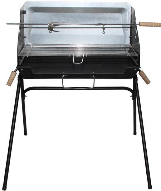 Na dřevěné uhlí, nastavitelný grilovací rošt, tělo grilu vyrobeno z litiny