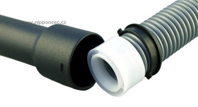 Madlo lze připojit dvojím způsobem - podle upevnění původního madla hadice vaše vysavače. Buď hadici našroubujete do univerzální rukojeti, do madla vložíte manžetu (součástí balení). Hadici zafixujete upevňovací obroučkou (černý kroužek v balení). Druhá možnost je připojení přes „click" systém - kónus 1:30 pro průměr 32 nebo 35 mm.