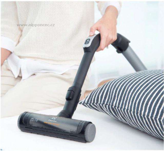 Tato originální speciální hubice na matrace, deky, polštáře a přikrývky i přehozy je velmi jemná a účinná pro vysávání prachu, drobných nečistot, exkremetů roztočů aj. na různých textilních materiálech. Silného sacího efektu je dosaženo pohybem rotačního kartáčového válečku, který vyvíjí silný tah k rychlému odstatranění prachu i vláken. Mimo to boční válečky této malé rotační hubice zajistí optimální přilnutí kartáče k vysávanému materiálu pro rychlý efekt.Výhodou je snadné čistění turbohubice: Otevřením obou klapek je ihned kartáčový válec přístupný a vlasy, chlupy a další nečistoty snadno odstraněny.