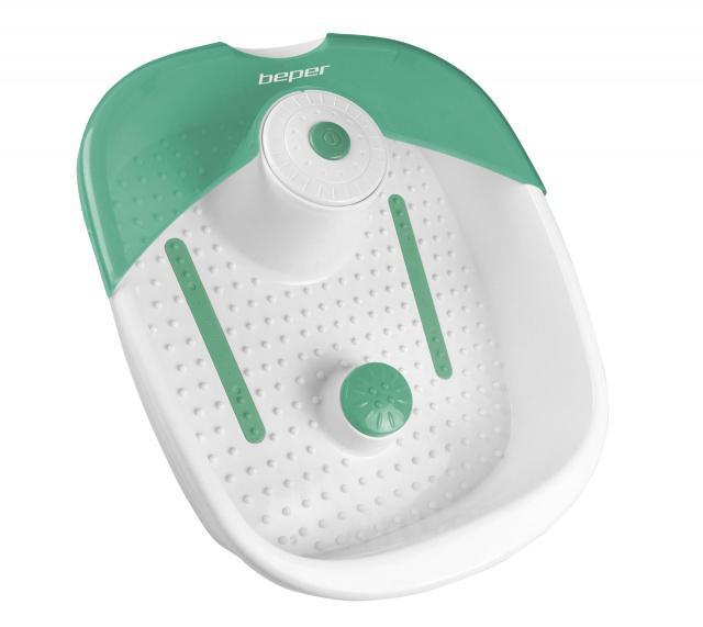 Masážní vana na nohy BEPER 40502 je vybavena bublinkovou a vibrační masáží pro příjemnou relaxaci nohou po náročném dni. Vana je opatřena ochranným krytem proti vylévání vody. Díky funkci udržení teploty si můžete užívat horkou lázeň bez toho, aniž by vám voda předčasně vychladla. Zejména v zimním období ji ocení zákazníci, kteří mají potíže s krevním oběhem a trpí buď na otoky nebo na často studené nohy, které se těžko zahřejí i v dobré zimní obuvi. V masážní vaně není doporučeno používání solí do vodní lázně (mohou blokovat bublinkové výstupy) a je zakázáno použití esenciálních olejů. Součástí vaničky je příslušenství pro masáž chodidel.