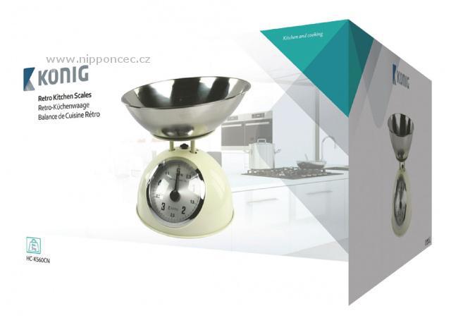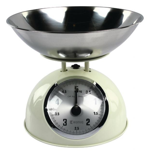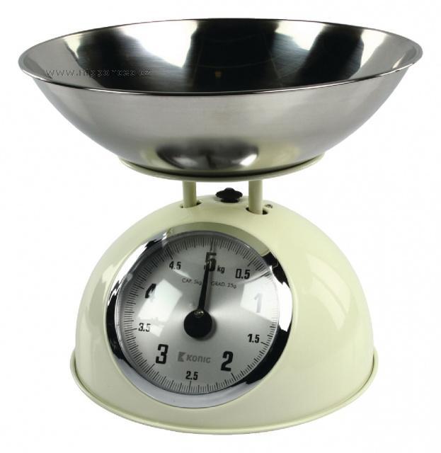 Kuchyňská retro mechanická váha s nerez miskou König krémová