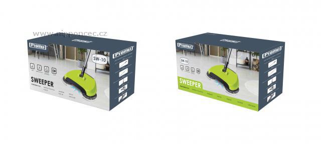 Tradiční mechanický zametač na tvrdé podlahy Promis SW10 rychle a jednoduše zamete nečistoty ze všech typů tvrdých podlah (parket, plovoucí podlahy, linolea, dlažby, vinylových podlah). Mechanický zametač je ekologický a spolehlivý, nezávislý na elektrické energii. Je vybaven dvěma velkými kartáči, snadno tak uklidíte v rohu místnosti, kolem nábytku i pod ním. Prach a nečistoty se ukládají do sběrné nádobky, a tak nepotřebujete žádné sáčky ani filtry.
