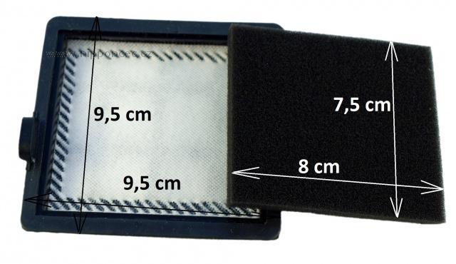 1x HEPA filtr Hygiene (max. rozměry: 112 x 98 mm) neomývatelný - 1x pěnový motorový filtr (80 x 80 mm) omyvatelný