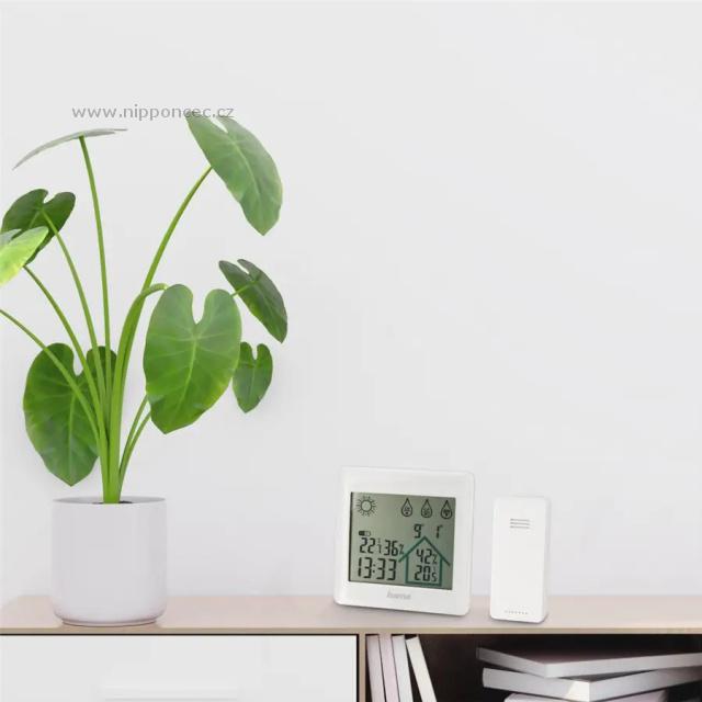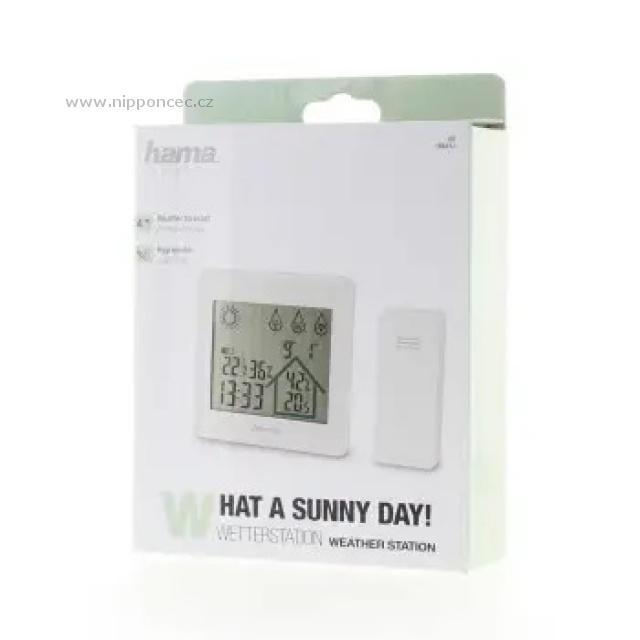 Digitální meteostanice Hama Action měří aktuální teplotu a vlhkost vzduchu venku i v místnosti. Displej se 3 dotykovými tlačítky také zobrazuje datum, čas a předpověď počasí pomocí čtyř symbolů: jasno, polojasno, oblačno, déšť. Bezdrátový venkovní senzor má ve volném prostranství dosah až 50 m a data přenáší do meteostanice prostřednictvím signálu s frekvencí 433 MHz. Je napájen 2 AAA Micro bateriemi, které jsou součástí balení stejně jako 3 AAA Micro baterie určené pro základnu. Meteostanici můžete postavit na rovnou plochu nebo ji zavěsit na stěnu.