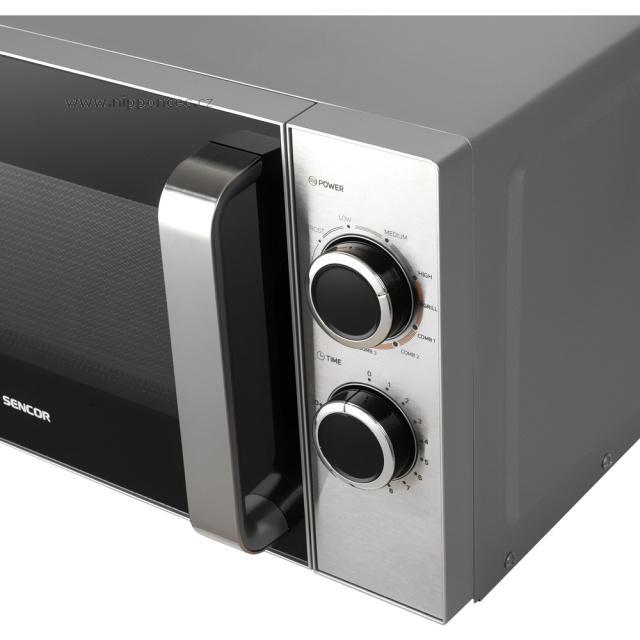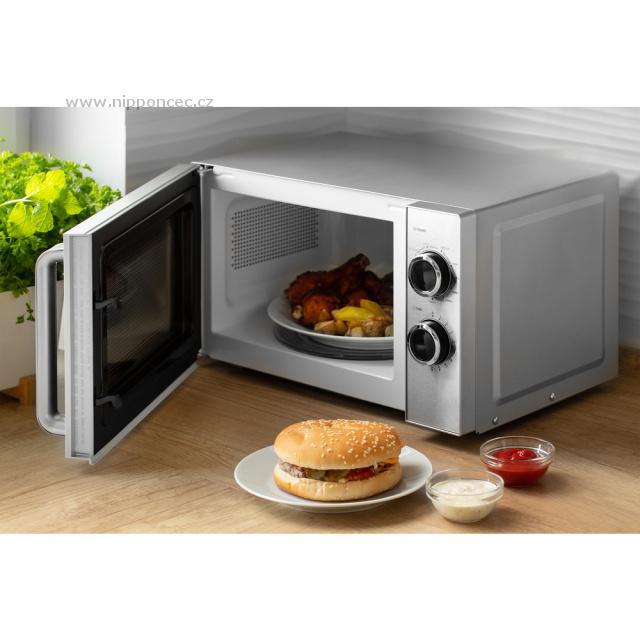 Praktická mikrovlnná trouba disponue mimo jiné vlastnostmi: Mikrovlnný ohřev pro jednoduché a rychlé ohřátí a vaření + gril. Konstrukce z nerezové oceli, žádné známky rzi ani ztráta atraktivního vzhledu. Trvanlivý interiér se smaltovaným povrchem pro snadné čištění. Snadnou manuální obsluhu zajišťují pouze dva ovládací knoflíky Velký vnitřní prostor: Lze používat ještě větší misky až do 25 cm.