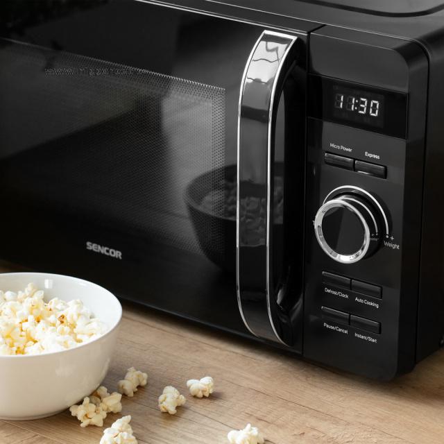 Mikrovlnná trouba Sencor v černé barvě, 800W, 17l, bez grilu, s jednoduchým ovládáním a otevíráním tahem. Maximální výkon činící 800 W je možné regulovat v celkem pěti stupních, mezi kterými nechybí ani režim pro rozmrazování. Vestavěný časovač je možné nastavit až na 60 minut. Výrobek je vybaven akustickou signalizací po dokončení vaření. Praktický výrobek za příznivou cenu.