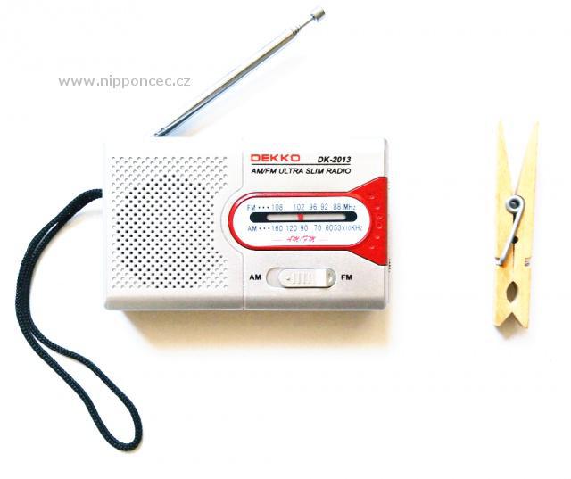 Malinkaté rádio, na bateriový provoz - 2x AA tužková alkalická baterie. Je skutečně kapesní - rozměry rádia 95 mm x 60 mm, tloušťka 25 mm. Je vybaveno manuálním ovládáním - tuner AM/FM, který se přepíná přepínačem na čelní straně výrobku. Anténa je teleskopická, vysouvací do maximální délky 260 mm. Na boční straně přístroje jsou umístněny otočné ovladače - jeden pro ladění, druhý pro ovládání hlasitosti. Součástí je poutko na ruku. Vstup pro sluchátka - 4,5 V DC jack (sluchátka nejsou v balení). Mono. Provoz na 2x AA - není součástí.