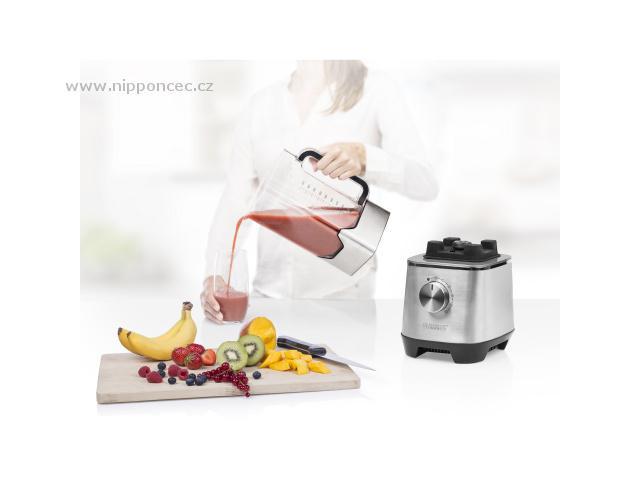 Výkonný mixér s motorem o výkonu 2000W v nerezovém provedení. Nádoba o objemu 2 l z Tritanu je dostatečně velká pro výrobu smoothie pro celou rodinu. Mixér má unikátní dotykový panel pro ovládání předprogramovatelných nastavení a nebo knoflík pro manuální ovládání. Ostří zvládne i drcení ledu. Odměrka, pulsní přepínač, LCD displej, modré podsvícení panelu, indikátor hladiny naplněnosti, protiskluzové provedení pro dobrou stabilitu. Výkon: 2000 W