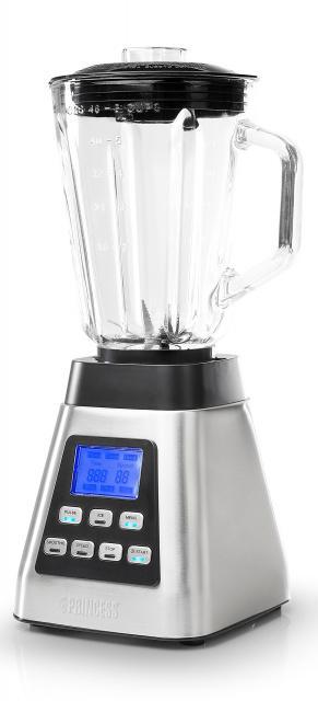 Výkonný stolní mixér Princess s LCD diplejem využijete nejen v domácnosti, ale i v menších gastro provozech. Přístroj je určený na mixování takřka všech druhů potravin, přípravu ledových sorbetů, omáček, polévek, koktejlů nebo oblíbených smoothie nápojů. Nádoba o velikosti 1,5 litru je skleněná, čepelky z nerezové oceli, tlačítka mají LED podsvícení.