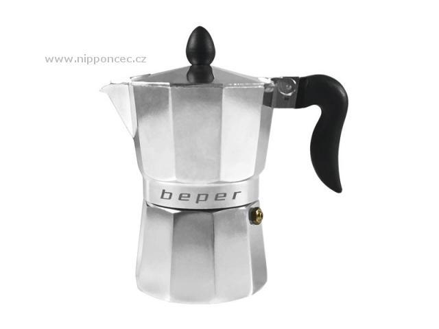 Kávovar moka BEPER CA010 pro přípravu tradiční italské kávy s kapacitou 1 šálek. Konvička je opatřena ergonomickou rukojetí a díky tomu je manipulace s ní velmi snadná a pohodlná. Hmotnost 145 g. Tradiční italský způsob přípravy kávy za pomoci natlakované páry.