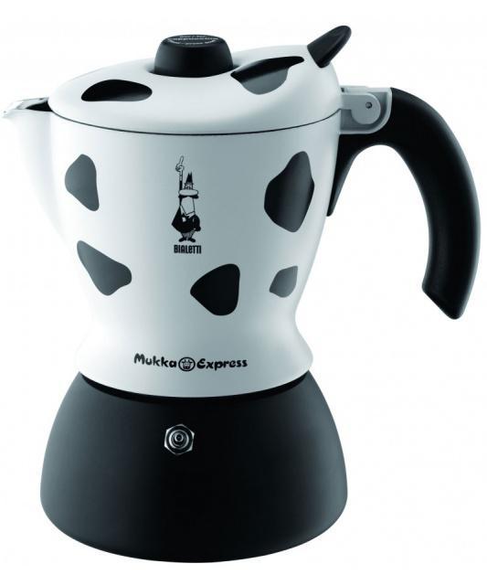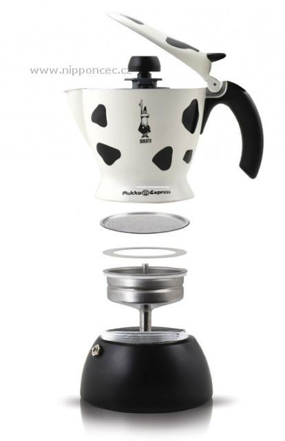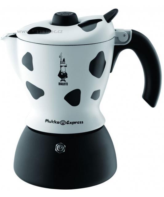 Hliníková moka konvice na 2 šálky kávy, neboli 100 ml. Lahodné cappuccino či caffé latte, jako ve vaší oblíbené kavárně. Moka konvička Mukka Express od Bialetti je jediný kávovar svého druhu, který vám umožní jeho přípravu i u vás doma a to za pouhých 4 - 5 minut . A jednoduše do kávovaru nalijete vodu, vsypete kávu a do zásobníku přidáte mléko, přepnutím tlačítka zvolíte latté nebo cappuccino. Mukka Express Bialetti má jedinečný černo-bílý design.