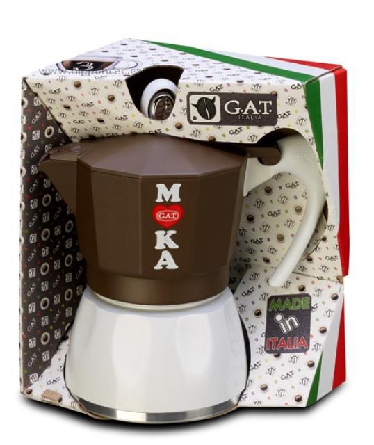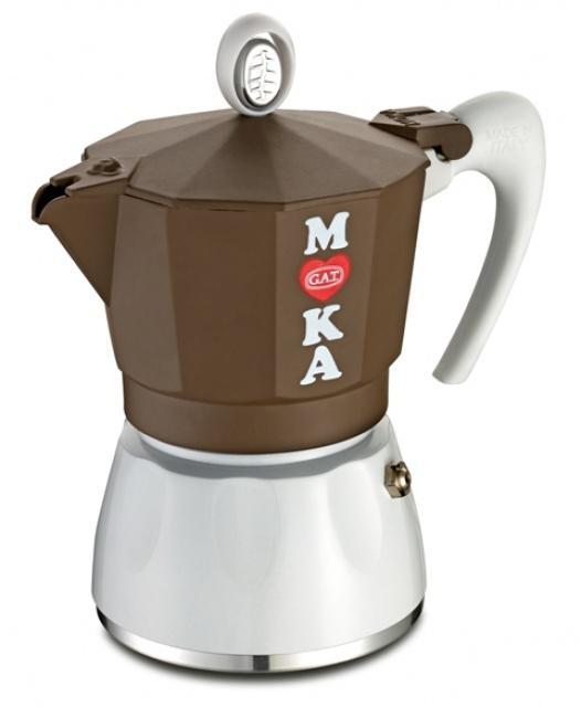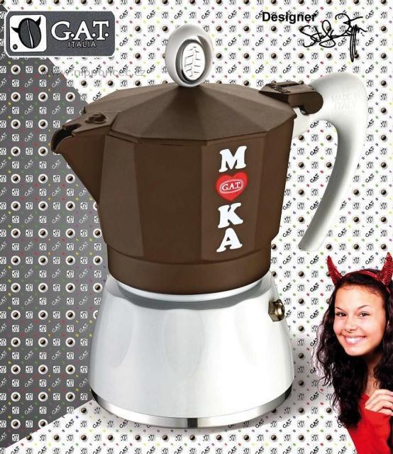 Moka konvička G.A.T pro tradiční přípravu italské kávy s vynikajícím aroma a jedinečnou chutí. Přetlakový kávovar (také se někdy nazývá perkolátor). Vnitřní část moka konvice má speciální povrch pro snadné čistění. G.A.T moka konvice je vyrobená ze zdravotně nezávadného aluminia a je určený pro elektrické, sklokeramické a plynové ploténky. Kávovar má ergonomickou rukojeť, bezpečnostní přetlakový ventil a lakovaný povrch s nápaditým dekorem. Vše, co potřebujete pro přípravu výborné kávy, kterou s ním připravíte snadno a osvědčeným způsobem, který se po léta nezměnil.