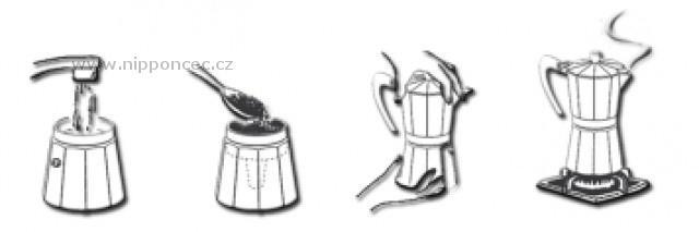 Příprava kávy v moka konvici je snadná, do spodní nádobky nalijete vodu, nálevku naplníte kávou, na nálevku nasadíte sítko, na sítko vrchní nádobku kávovaru. Všechny části moka konvice sešroubujete a postavíte na ploténku. Příprava trvá cca 4 minuty,poté je ve vrchní části nádoby čerstvá voňavá káva s nezaměnitelnou chutí, stačí jen servírovat.
