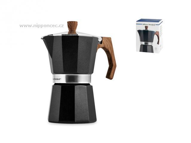 Černá moka konvička Pengo Standard pro tradiční přípravu kávy italského typu s vynikajícím aroma. Určeno pro 6 šálků. Vnitřní stěna hliníkové nádoby se po čase používání potáhne patinou, která je pro správnou chuť kávy nepostradatelná.