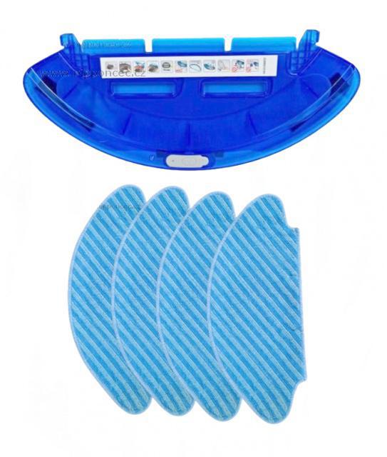 Sada obsahuje nádržku pro mopování a 4 mopy, které se nalepí na nádržku. Přičemž nádržka pojme až 110ml a mopy jsou vyrobené z mikrovlákna, proto efektivně podlahu vytřou. Mopy je nutné každých 6 měsíců vyměňovat.