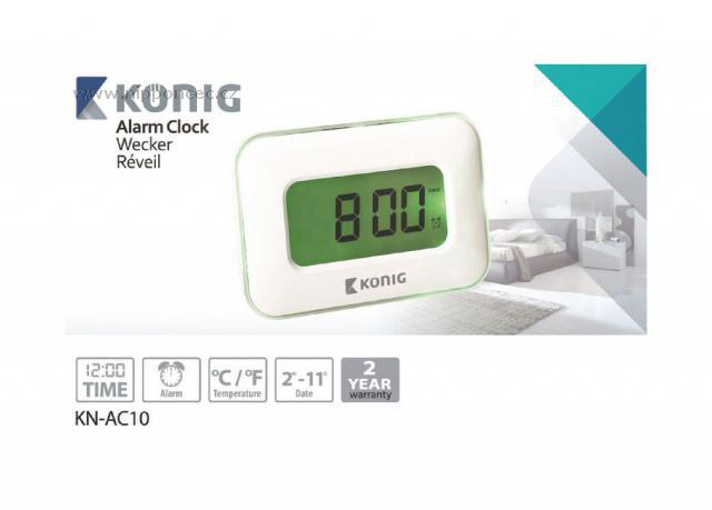 S tímto digitálním stolním budíkem Nedis CLDK003GY již nikdy nezaspíte do práce, nezmeškáte obchodní jednání ani výlet snů. Hodiny se zobrazují na přehledném podsvíceném LCD digitálním displeji. Je napájený 2 AA bateriemi (není součástí balení).