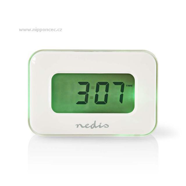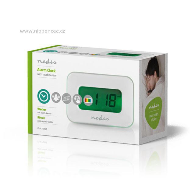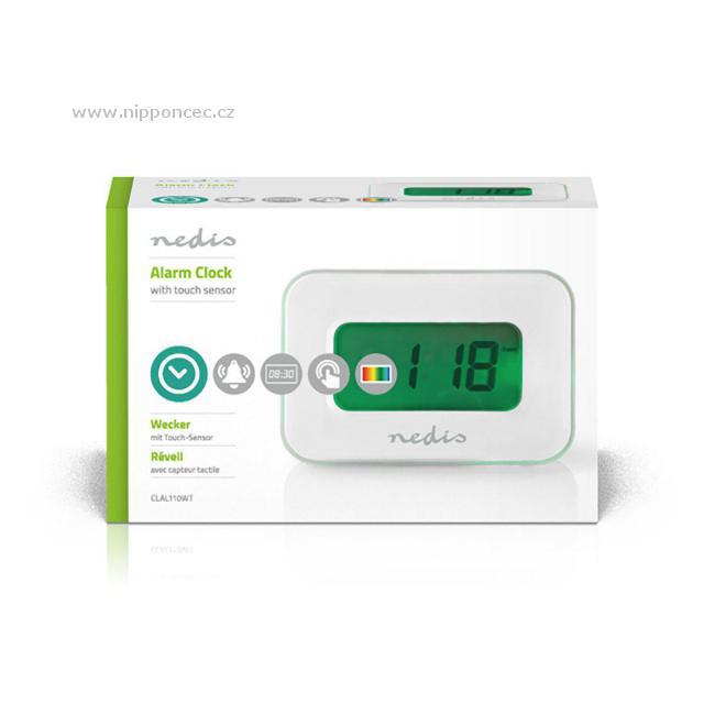 Pouhým dotykem budíku rozsvítíte displej, vypnete alarm nebo přepnete mezi zobrazením času, data, teploty v místnosti, alarmu a časovače. Každá funkce je podsvícena jinou barvou. Budík je vybaven extra velkým, jasně čitelným displejem.Digitální budík Nedis - každá funkce je podsvícena jinou barvou.