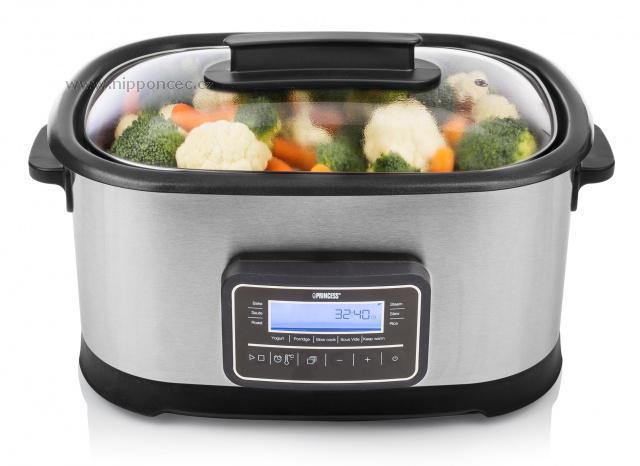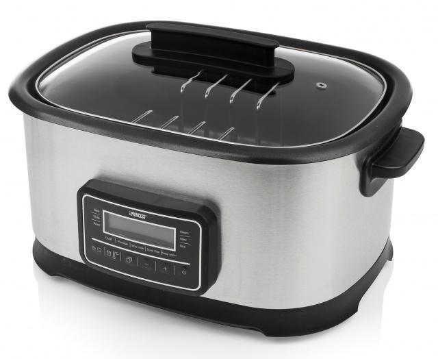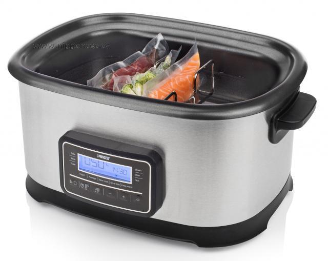 Multifunkční elektrický hrnec na Sous Vide Princess 26 3000 s příkonem 1500 W pomocí funkce sous vide, tedy pomalého vaření masa ve vakuu, z vás udělá šéf kuchaře. Spěcháte? Naházejte pár potravin do tohoto multifunkčního elektrického hrnce a nechte hrnec pracovat za vás. Mezitím co budete pryč, se jídlo bude připravovat samo.
