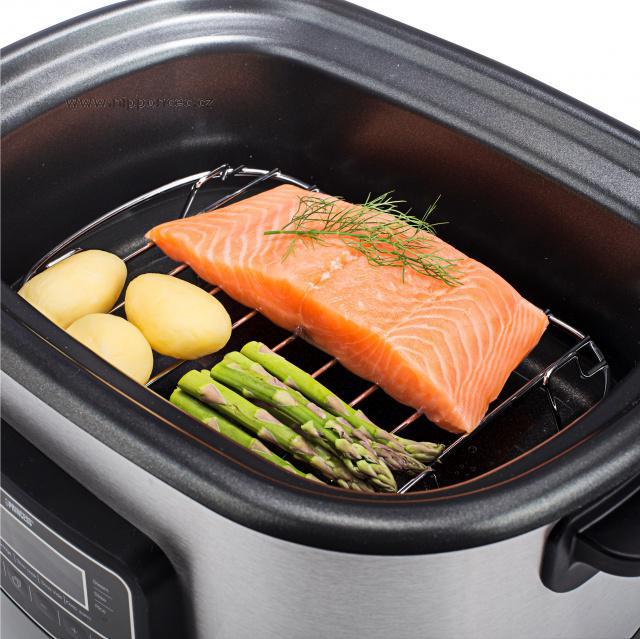 Ideální pro sous vide, sotýrování, pečení, dušení, vaření v páře, vaření polévek a rýže, přípravu jogurtu, grilování a pomalé vaření. Navíc funkce pomalého vaření uchová v připravovaném jídle všechny chutě, vitamíny, živiny a zbytečně pokrmy nevysušuje. Je tedy pro Vás tou nejzdravější formou připravování pokrmů. Multifunkční elektrický hrnec je vybaven nosičem pro vaření v páře a nosičem pro sous vide, takže můžete ihned začít vařit.