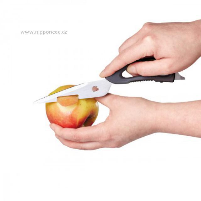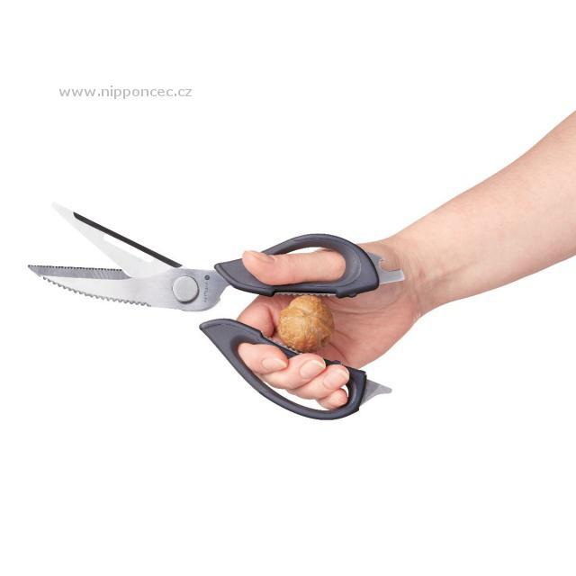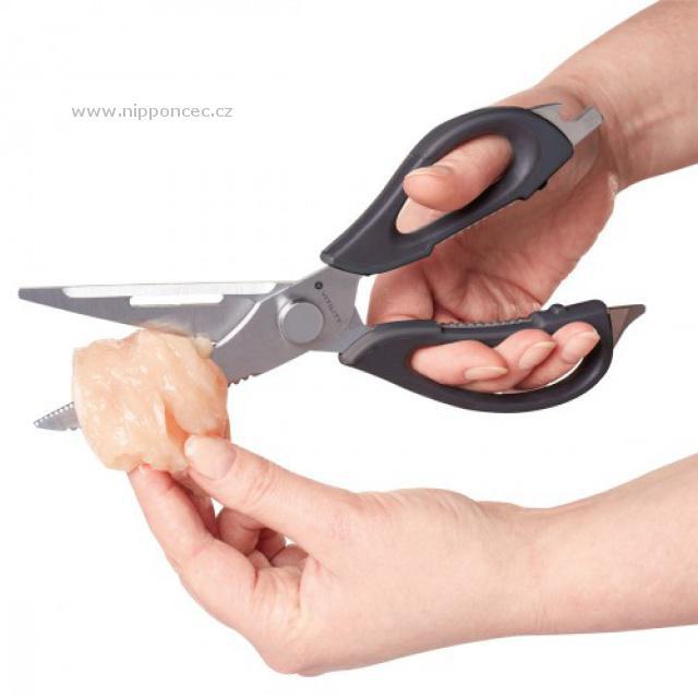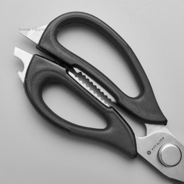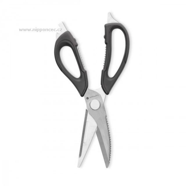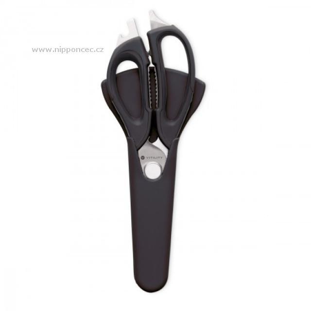 Multifunkční nůžky Vitility 70210340 využijete jak v kuchyni, tak v celé domácnosti. Mají ostré a robustní čepele, které se dají rozdělit na dvě části. Jednoduše s nimi naporcujete maso, oškrábete zeleninu, otevřete lahve, utáhnete šrouby nebo nastříháte papíry nebo plast. I rukojeti najdou své uplatnění. Je mezi nimi umístěna kovová část, se kterou rozlousknete ořechy raz dva. A pokud s nimi nebudete pracovat, můžete je pro větší bezpečí uložit do praktického pouzdra.
