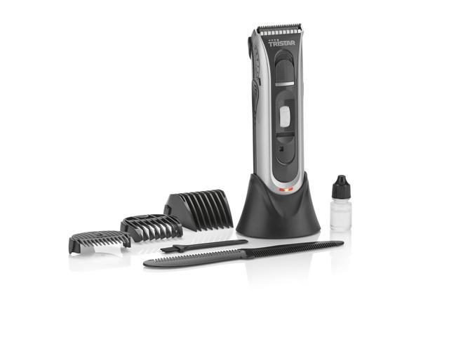 Zastřihovač vlasů Tristar má ostré nerezové čepelky a je výborný pro mnoho délek střihu - nastavitelný hřeben má široký rozptyl 0,5 mm - 36 mm. Součástí příslušenství je i extra hřeben na tzv. prostříhávání. Strojek je nabíjecí, po prvním nabití je schopen bezdrátového provozu v délce až 45 minut. Posuvný vypínač na přední straně se snadno ovládá. Balení obsahuje dokovací stanici, hřebenový nástavec 3mm - 18 mm, hřebenový nástavec 21 - 36 mm, zmiňovaný nástavec na prostříhávání, adaptér, čisticí kartáček, mazací olej, a kadeřnická hřeben.
