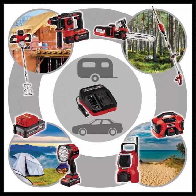 Nabíječka PXC Einhell Power X-Car Charger 3A pro baterie z řady Einhell Power X-Change je vybavena 12V zástrčkou, která umožňuje připojit nabíječku v autě nebo obytném voze při kempování, ať už v lese nebo na pláži. Nabíječka Power X-Car Charger zajišťuje nejen optimální proces nabíjení baterií z řady Power X-Change, ale také chrání autobaterii díky 2stupňové ochranné elektronice, takže nebude problém auto kdykoli nastartovat. Pokud se autobaterie blíží vybití, proces nabíjení PXC baterie se automaticky zastaví. Slabá autobaterie je signalizována blikáním kontrolek.
