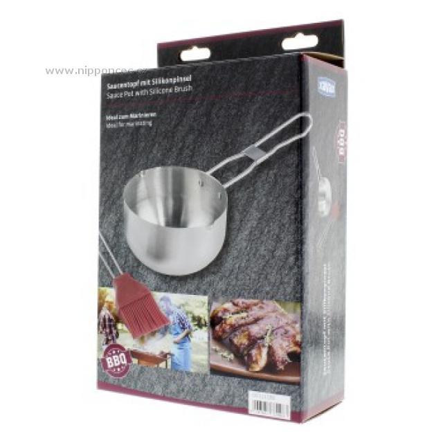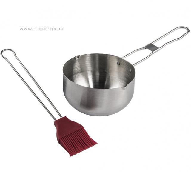 Nádoba z nerezové oceli, určená na potírání grilovaných pokrmů marinádou. Má pohodlné držení díky dlouhé rukojeti misky a mašlovačky, rukojeť nádoby a mašlovačky umožňuje zavěšení. Nerezová nádoba má odolnost 600°C a mašlovačka 180°C. Nerezovu nádobu lze mít v myčce.