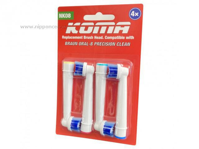 Náhradní hlavice standardní velikosti Koma NK08 jsou kompatibilní s elektrickým zubním kartáčkem Braun Oral-B. Balení obsahuje 4 kusy nástavců PRECISION CLEAN. Hlavici je doporučeno měnit každé 3 měsíce.
