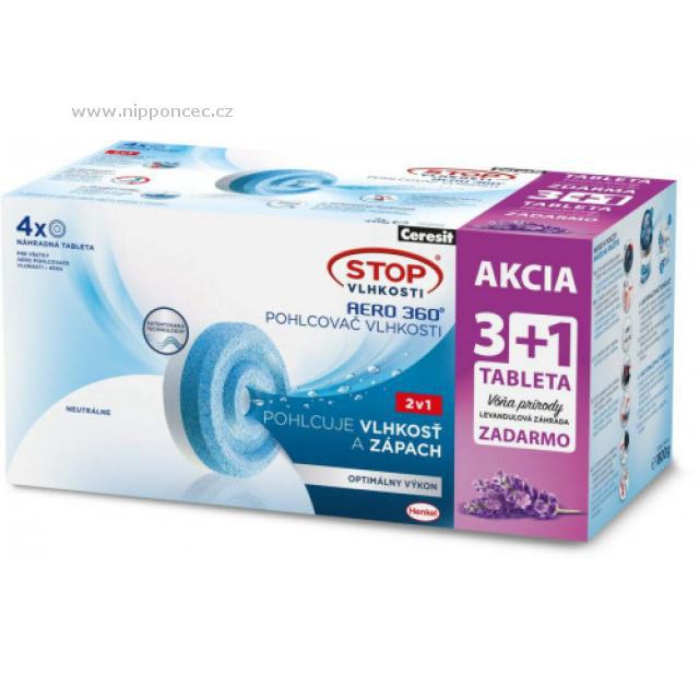 Vylepšené absorpční tablety do odvlhčovače vzduchu Ceresit STOP VLHKOSTI AERO 360° mají aerodynamický tvar a otvor uprostřed. Díky tomu jsou v boji s nadměrnou vlhkostí ještě účinnější. V místnosti do 20 m2 jedna tableta vydrží až 3 měsíce a její účinky postřehnete již během prvních 12 hodin používání. Zatímco modrá část redukuje zápach, ta bílá pohlcuje vlhkost a přeměňuje ji na roztok, který se shromažďuje v průhledné nádržce. Tableta vložená do přístroje se spotřebovává postupně - zmenšuje svůj objem. Novou dávejte do odvlhčovače vždy modrou stranou dolů.