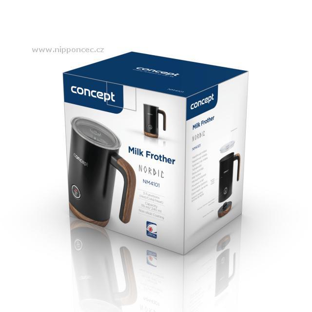 Elektrický napěňovač mléka Concept NM4101 snadno vykouzlí hustou a sametově jemnou pěnu. Je vhodný na přípravu cappuccina, latté, frappé i horké čokolády. Mléko v něm napěníte nebo jen ohřejete. Má průhledné víko, a tak máte výrobu pěny pod kontrolou. Díky nepřilnavému vnitřnímu povrchu se mléko během ohřevu nepřipaluje a přístroj se jednoduše čistí. A v neposlední řadě tento „šikula" hezky vypadá. Vyroben je z nerezové oceli s matným povrchem a doplňků v designu dřeva.