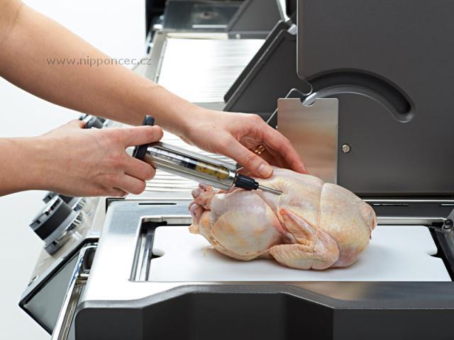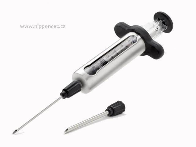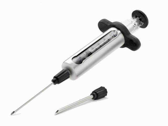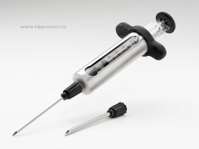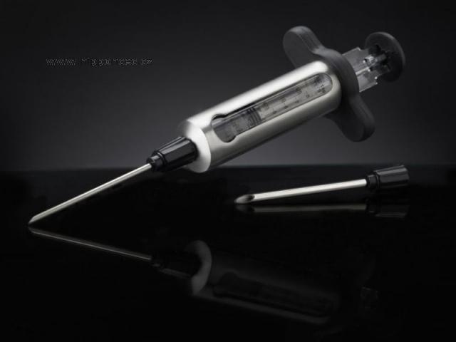 Překvapte sousedy na grilovací párty jemným a perfektně šťavnatým masem. Ideální pomůcka pro důkladné marinování masa i zevnitř. Součástí balení jsou dvě vyměnitelné, rozdílné jehly pro různou konzistenci marinád. A to jedna jehla s menším otvorem, která je ideální pro tekuté omáčky, máslo, víno a jiné jemné marinády, a jedna jehla s velkým otvorem vhodná pro marinády s většími kousky ingrediencí (např. kousky koření apod.).