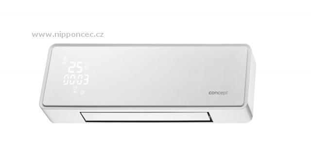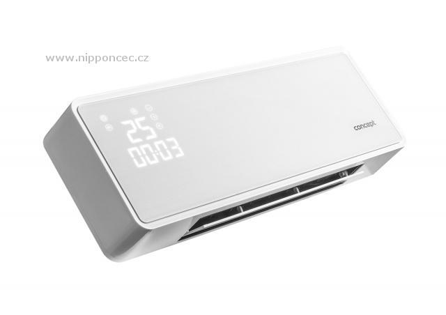 Nástěnné keramické topidlo Concept QH4001 s LED displejem je vhodné pro vytápění místností do velikosti 20 m2 vč. koupelen. 2 stupně výkonu, funkce ventilátoru.